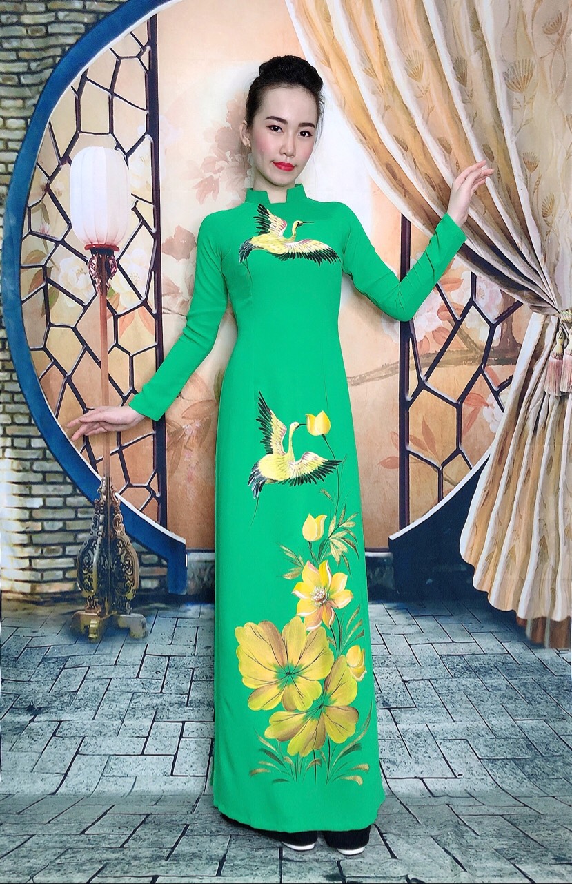 Fabric: Material of this Ao Dai is light weighted silk, so soft and delicate. The hand painted design is charming and very elegance.