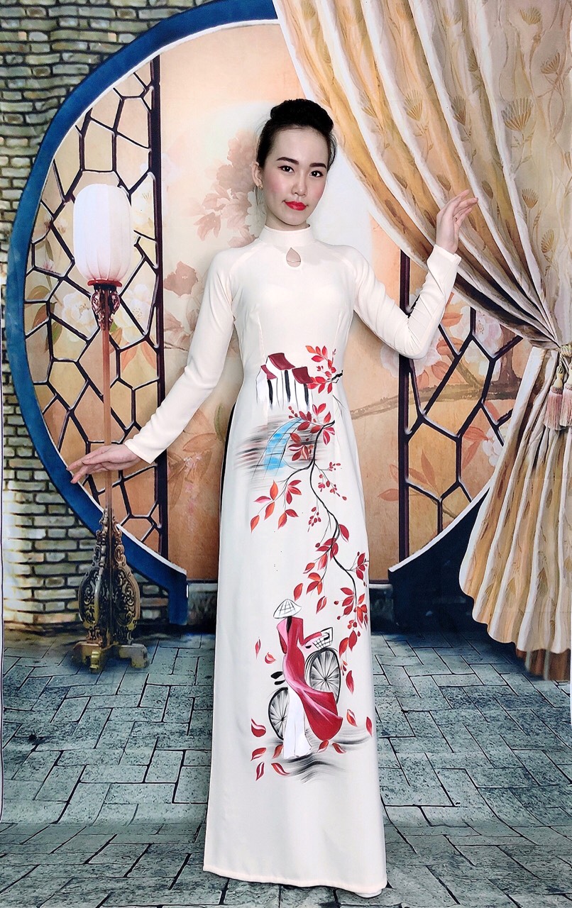 Fabric: Material of this Ao Dai is light weighted silk, so soft and delicate. The hand painted design is charming and very elegance.