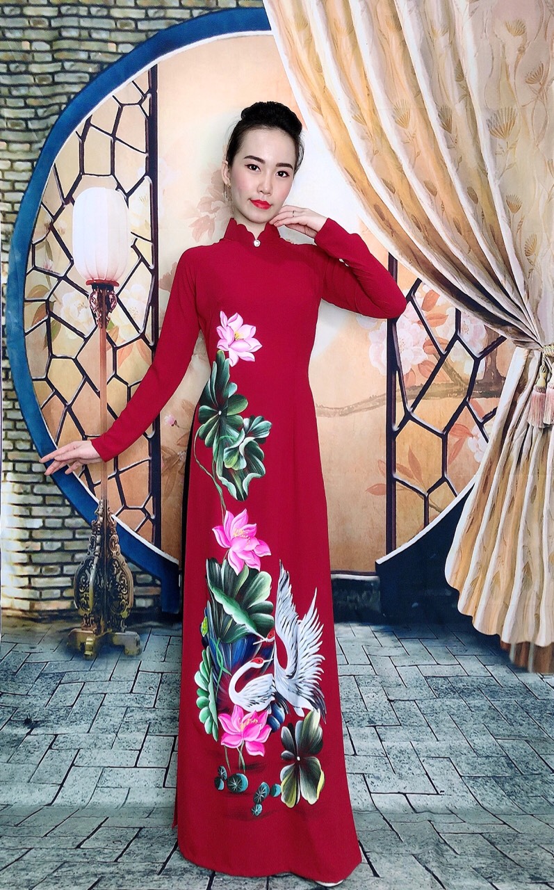 Fabric: Material of this Ao Dai is light weighted silk, so soft and delicate. This dark red color is so vibrance and bold, the hand painted design is truly a work of art. This product is the gem, a MUST-HAVE in your collection of Ao Dai.