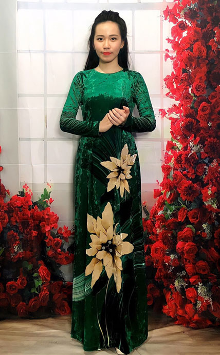 HomeVelvet Ao Dai Velvet – 2 Flowers – Emerald