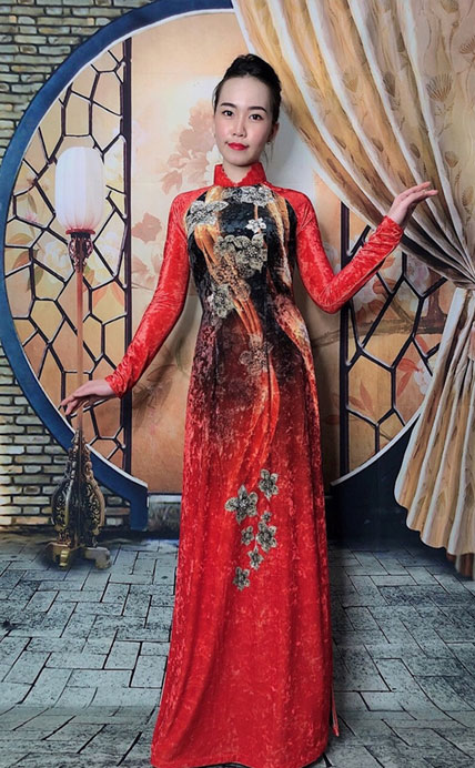 HomeVelvet Ao Dai Velvet – Flowers – Red
