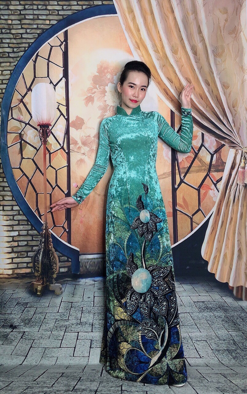 HomeVelvet Ao Dai Velvet – Pearls – Turquoise