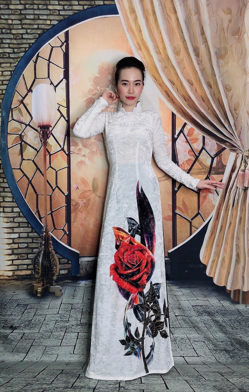 HomeVelvet Ao Dai Velvet – Red Rose – White